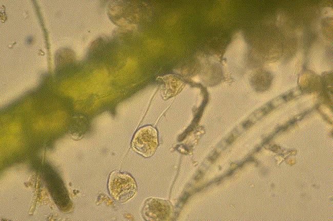 1.ユレモ(Oscillatoria, オッシラトリア):ランソウ(藍藻)(シアノバクテリア)の一種
