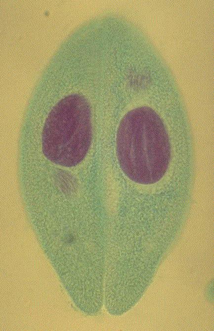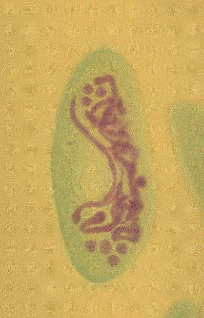 52.ゾウリムシ(Paramecium caudatum):接合、フォイルゲンーファーストグリーン二重染色
