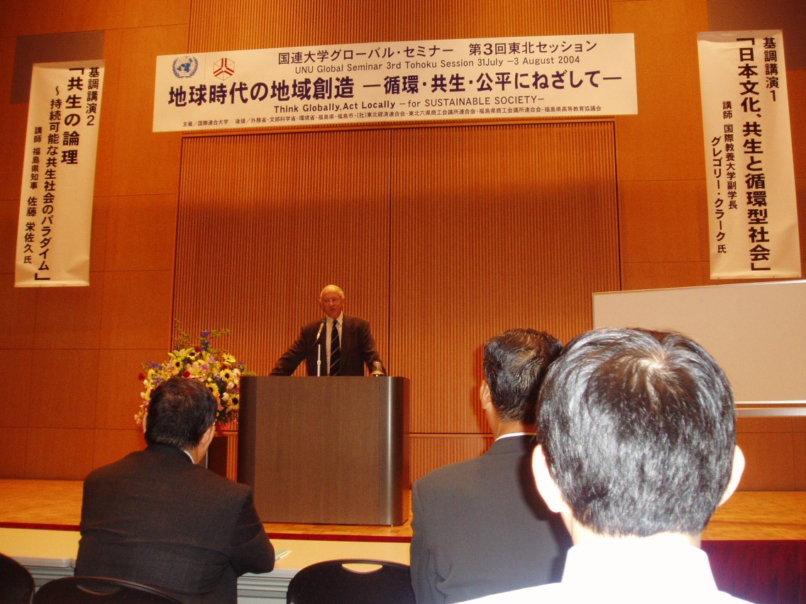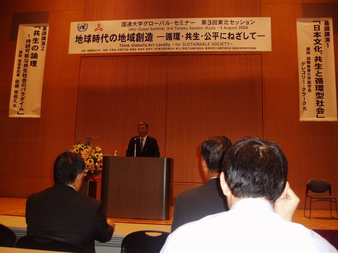 『日本文化、共生と循環型社会』グレゴリー・クラーク国際教養大学副学長『共生の理論 〜持続可能な共生社会のパラダイム〜』佐藤 栄佐久福島県知事 |