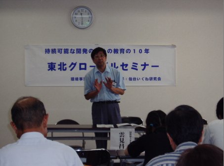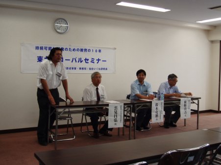 環境研兼務教官の小金沢先生よりお誘いをうけ、参加しました。昨年12月開催の国際環境教育シンポジウムにもお出でいただきました、成蹊大学名誉教授の廣野良吉先生にもお目に掛かれ、貴重なお話を伺うことができました。 公開講演会だけのつもりが、第2部「教育の10年」研修会にまで参加し、皆様の活動報告をお聞きし、大学として何が出来るか等考えさせられました。 第2回目「発展途上国の現状」・第3回目「発展途上国からの支援要望」等、今後環境研が関わっていく初等中等教育分野等の協力強化のための「拠点システム」・「教育協力経験の浅い分野における取組み」で 「開発途上国における環境教育支援のための実践事例データベース」 づくりに少しでもお役に立てればと思っていますので、時間が許す限り参加させていただきたいです。